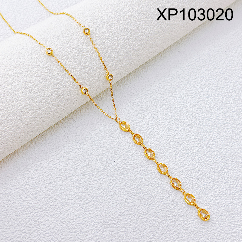 Home > Level B Stainless Steel New Trendy Women Jewelry Oval White Crystal zirconium Golden Pendant