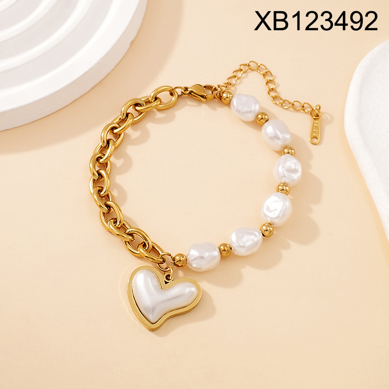 Level B Stainless Steel New Trendy Women Jewelry Pearl Style/Plastic Beads Heart Golden Chain Valentine's Day Bracelet