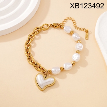 Home > Level B Stainless Steel New Trendy Women Jewelry Pearl Style/Plastic Beads Heart Golden Chain Valentine's Day Bracelet