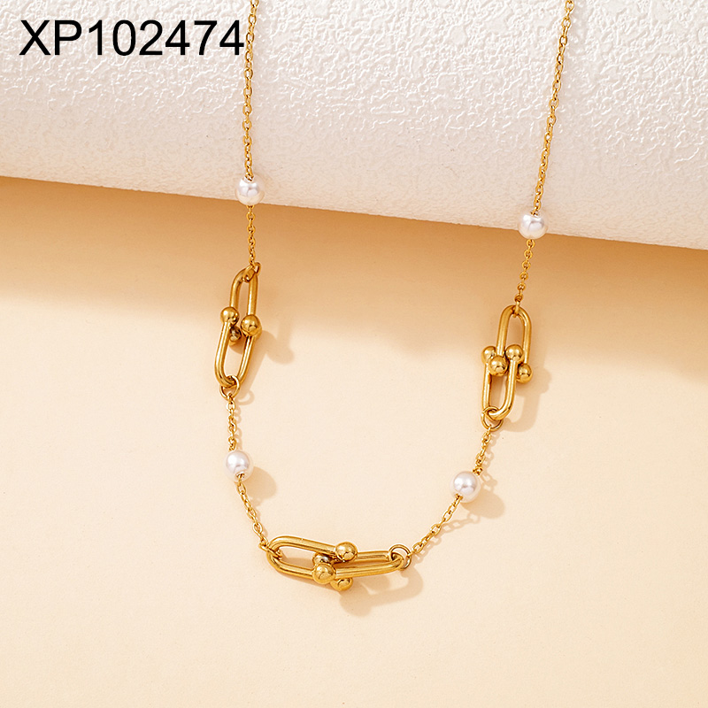 Level B Stainless Steel New Trendy Women Jewelry Pearl Style/Plastic Beads Horseshoe buckle Golden Pendant
