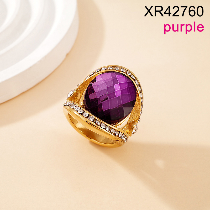 Home > Level B Stainless Steel New Trendy Women Jewelry Purple Stone Golden Casting Rings