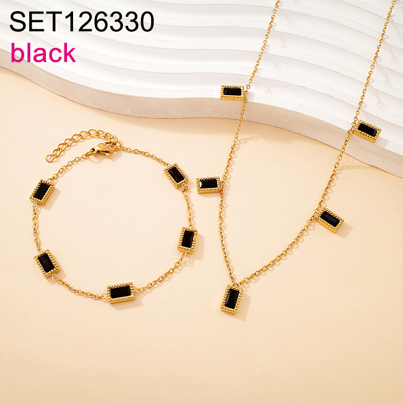 Home > Level B Stainless Steel New Trendy Women Jewelry Rectangle Black Crystal zirconium Golden Chain SET