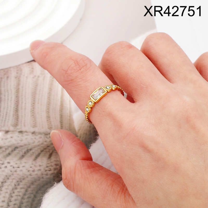 Home > Level B Stainless Steel New Trendy Women Jewelry Rectangle Golden Open Rings;Ring size can be adjusted freely