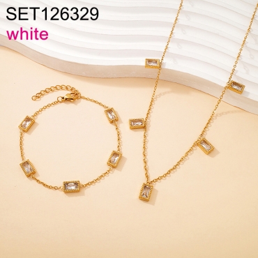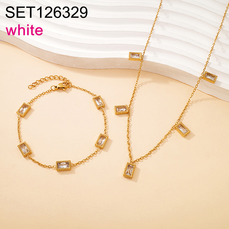 Home > Level B Stainless Steel New Trendy Women Jewelry Rectangle White Crystal zirconium Golden Chain SET