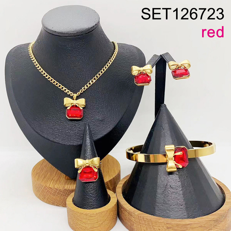Home > Level B Stainless Steel New Trendy Women Jewelry Red Glass Bowknot Golden 4pcs SET