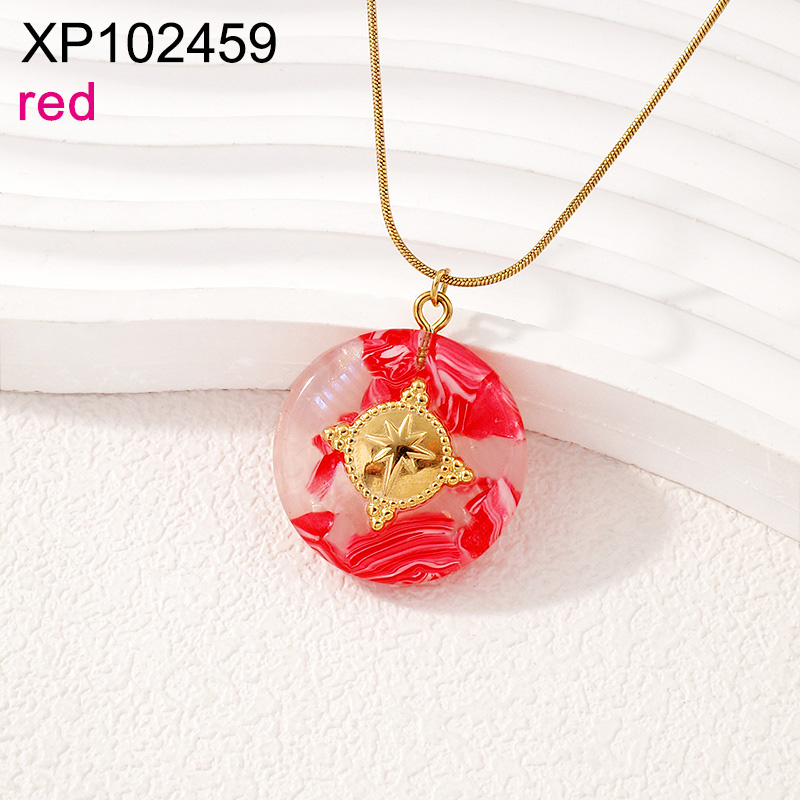 Level B Stainless Steel New Trendy Women Jewelry Resin Red Round Golden Pendant