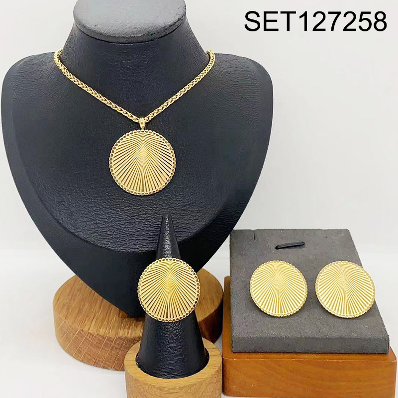 Level B Stainless Steel New Trendy Women Jewelry Round Golden 3pcs SET