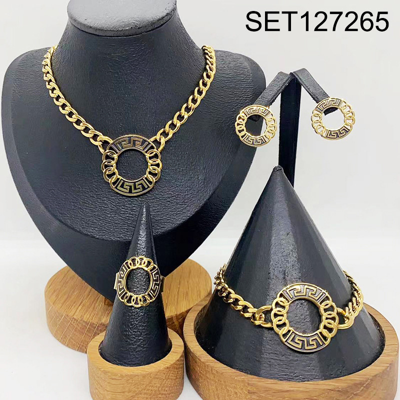 Level B Stainless Steel New Trendy Women Jewelry Round Golden 4pcs SET