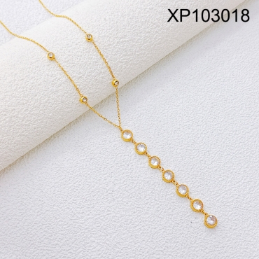 Home > Level B Stainless Steel New Trendy Women Jewelry Round White Crystal zirconium Golden Pendant