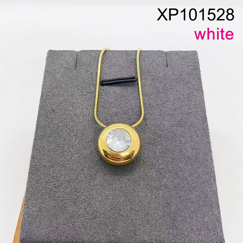 Home > Level B Stainless Steel New Trendy Women Jewelry Round White Glass Zircon Golden Pendant