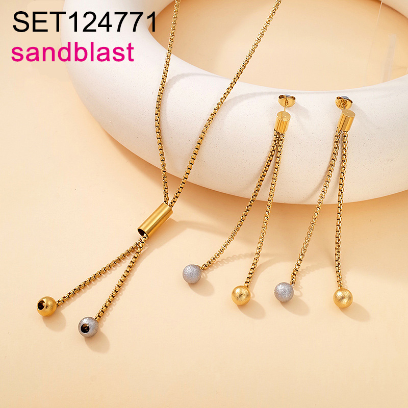 Level B Stainless Steel New Trendy Women Jewelry Sandblast Bead Two Tone SET