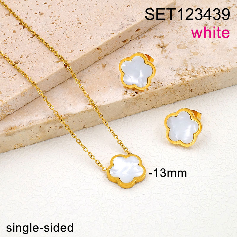 Level B Stainless Steel New Trendy Women Jewelry Single-sided White Flower Golden SET