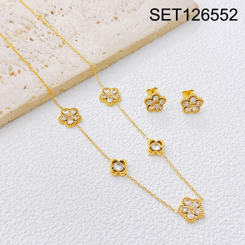 Home > Level B Stainless Steel New Trendy Women Jewelry Sticky Stone White SYC Flower Golden SET