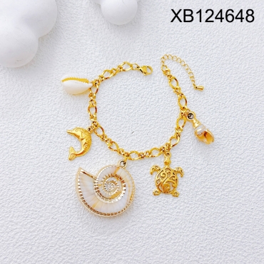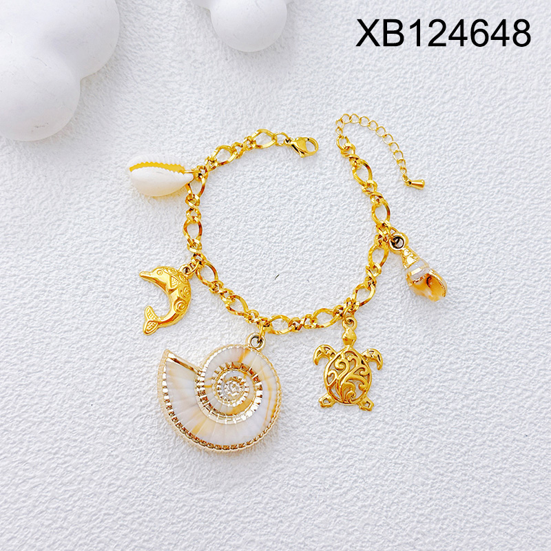 Home > Level B Stainless Steel New Trendy Women Jewelry Summer beach Animal Conch Shark Turtle Shell Golden Bracelet