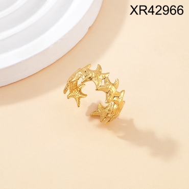 Level B Stainless Steel New Trendy Women Jewelry Summer beach Animal Starfish Golden Open Rings;Ring size can be adjusted freely
