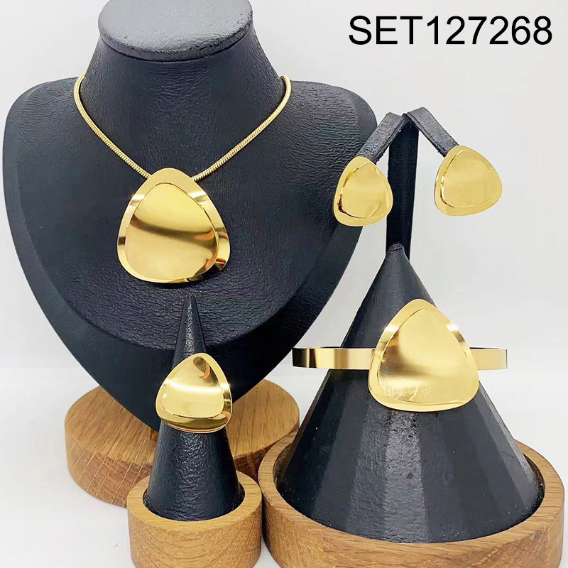 Level B Stainless Steel New Trendy Women Jewelry Triangle Golden 4pcs SET