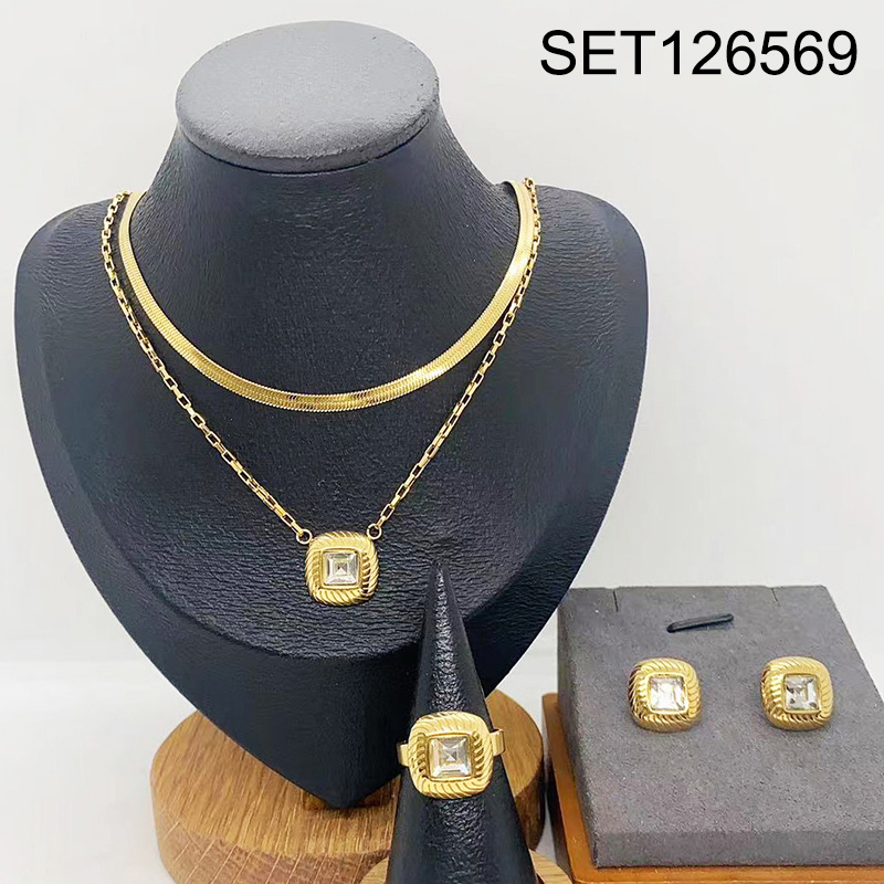 Level B Stainless Steel New Trendy Women Jewelry Two Layers Chain Golden 3pcs SET