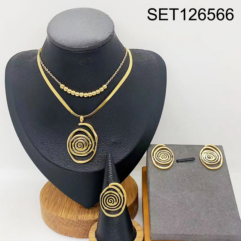 Level B Stainless Steel New Trendy Women Jewelry Two Layers Chain Oval Golden 3pcs SET