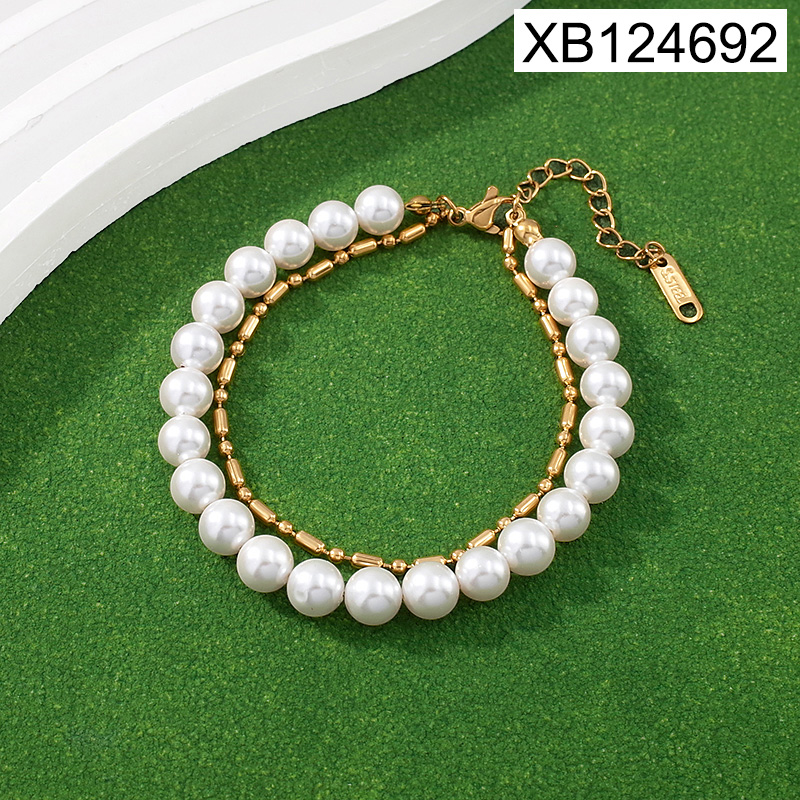 Home > Level B Stainless Steel New Trendy Women Jewelry Two Layers Chain Pearl Style/Plastic Beads Golden Bracelet