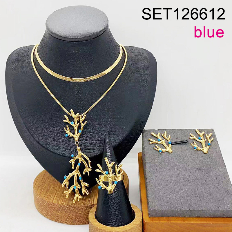 Level B Stainless Steel New Trendy Women Jewelry Two Layers Chain Summer beach Seaweed Golden 3pcs SET