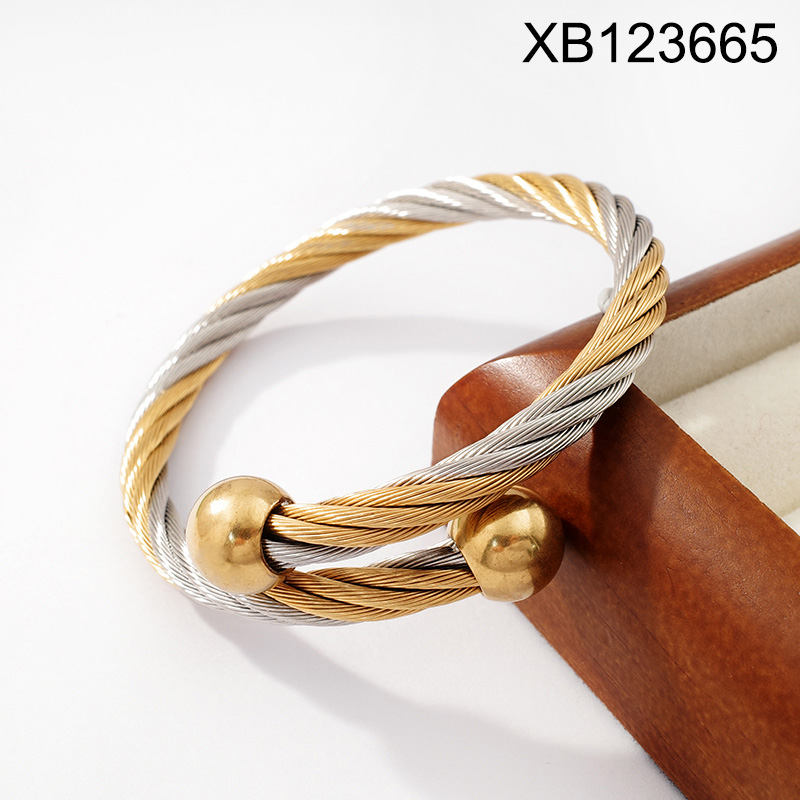 Level B Stainless Steel New Trendy Women Jewelry Two Tone Wire Bangle;Bangle size can be adjusted freely