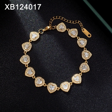 Home > Level B Stainless Steel New Trendy Women Jewelry White Rhinestone Heart Golden Bracelet