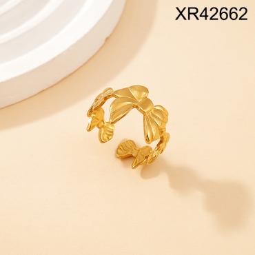 Level C Stainless Steel New Trendy Women Jewelry Bowknot Golden Open Rings;Ring size can be adjusted freely
