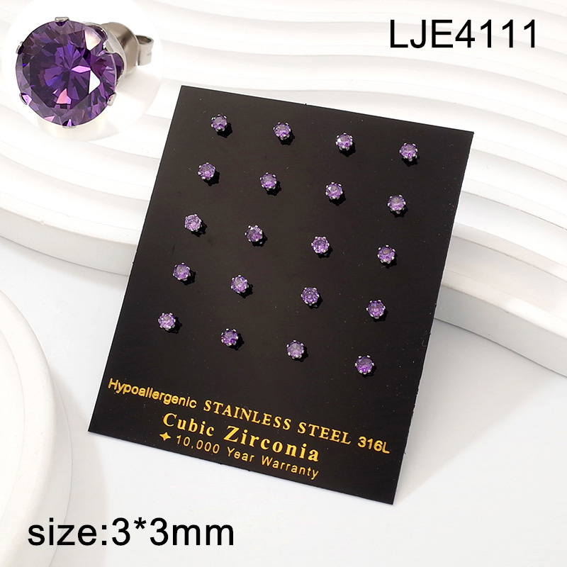 Level A Stainless Steel Jewelry Steel color Purple Round Zircon Earrings
