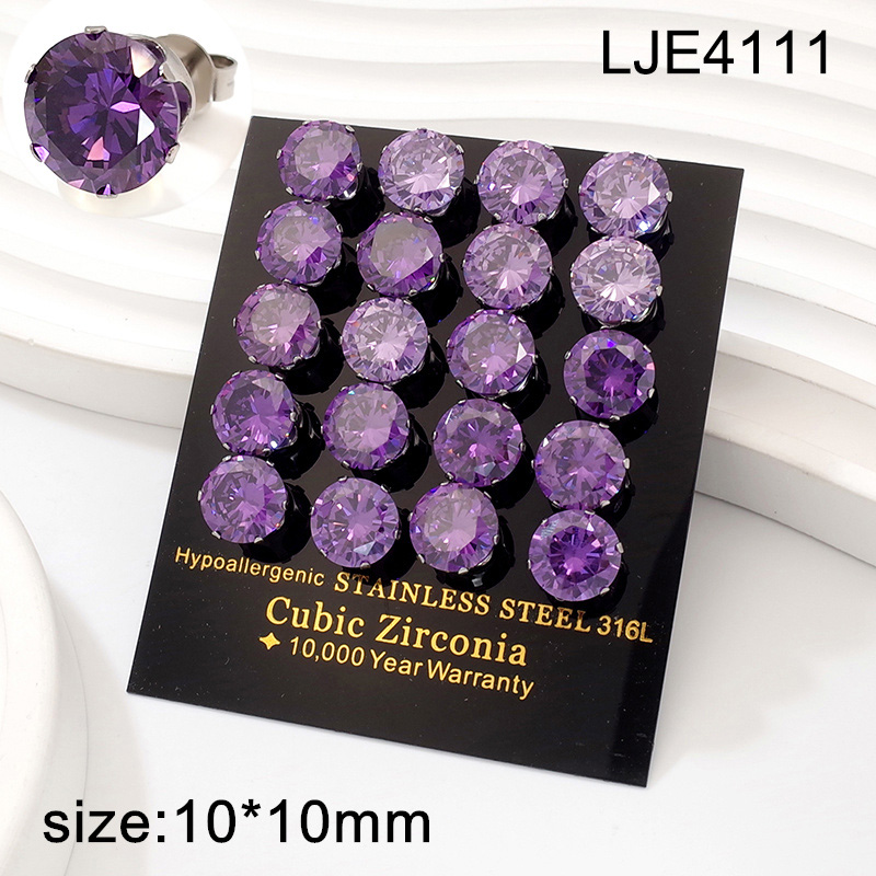 Level A Stainless Steel Jewelry Steel color Purple Round Zircon Earrings