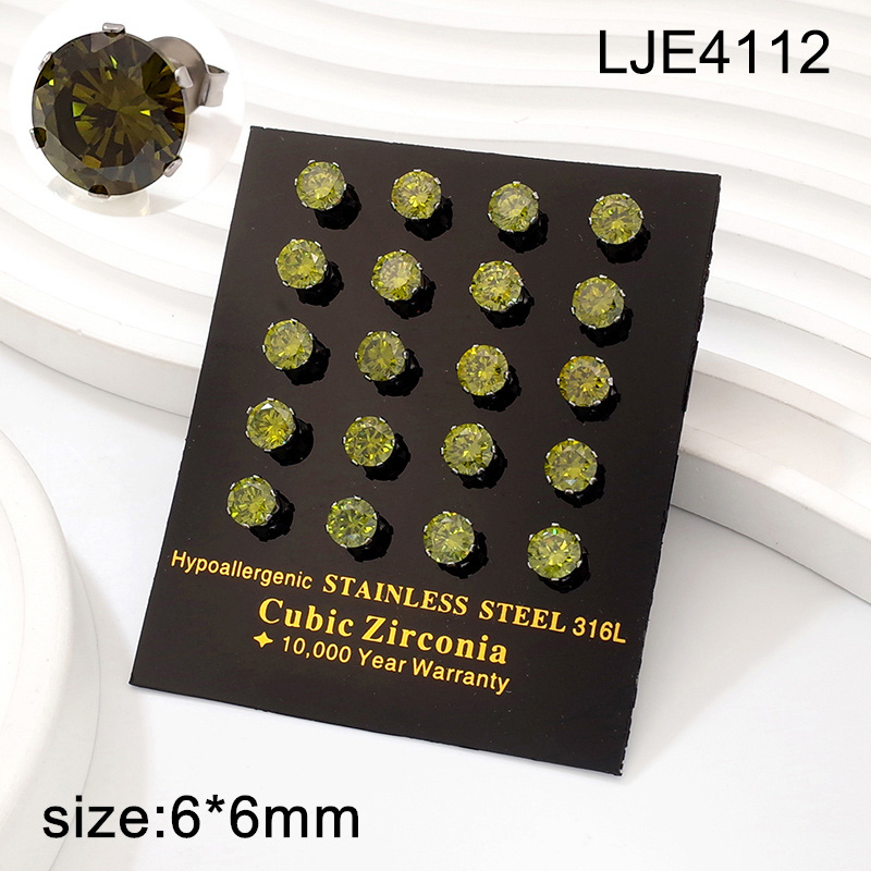 Home > Level A Stainless Steel Jewelry Steel color Olive green Round Zircon Earrings