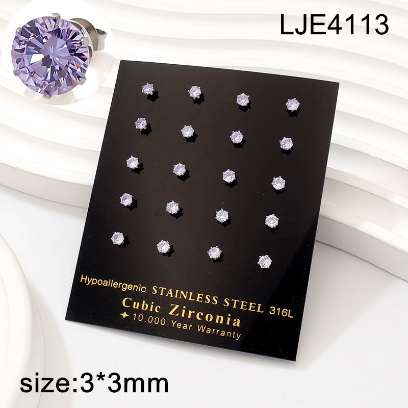 Level A Stainless Steel Jewelry Steel color Turn blue Round Zircon Earrings