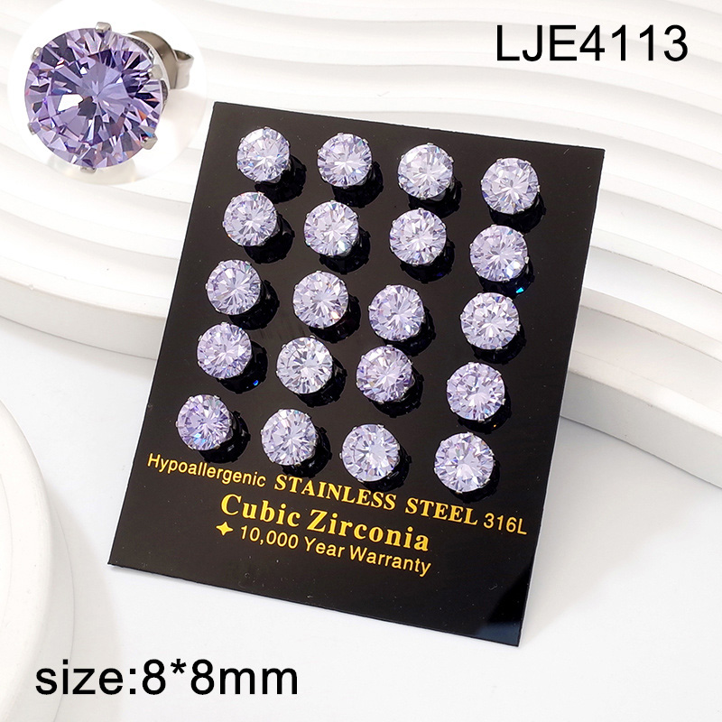 Level A Stainless Steel Jewelry Steel color Turn blue Round Zircon Earrings