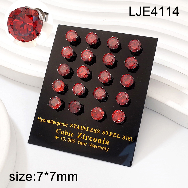 Level A Stainless Steel Jewelry Steel color Red Round Zircon Earrings