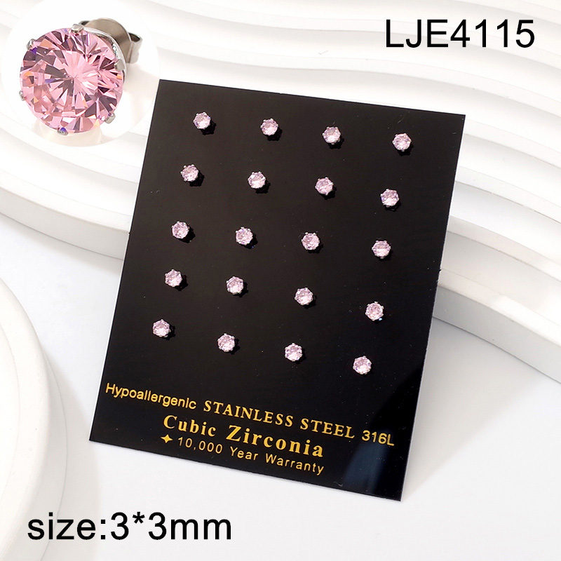 Level A Stainless Steel Jewelry Steel color Pink Round Zircon Earrings