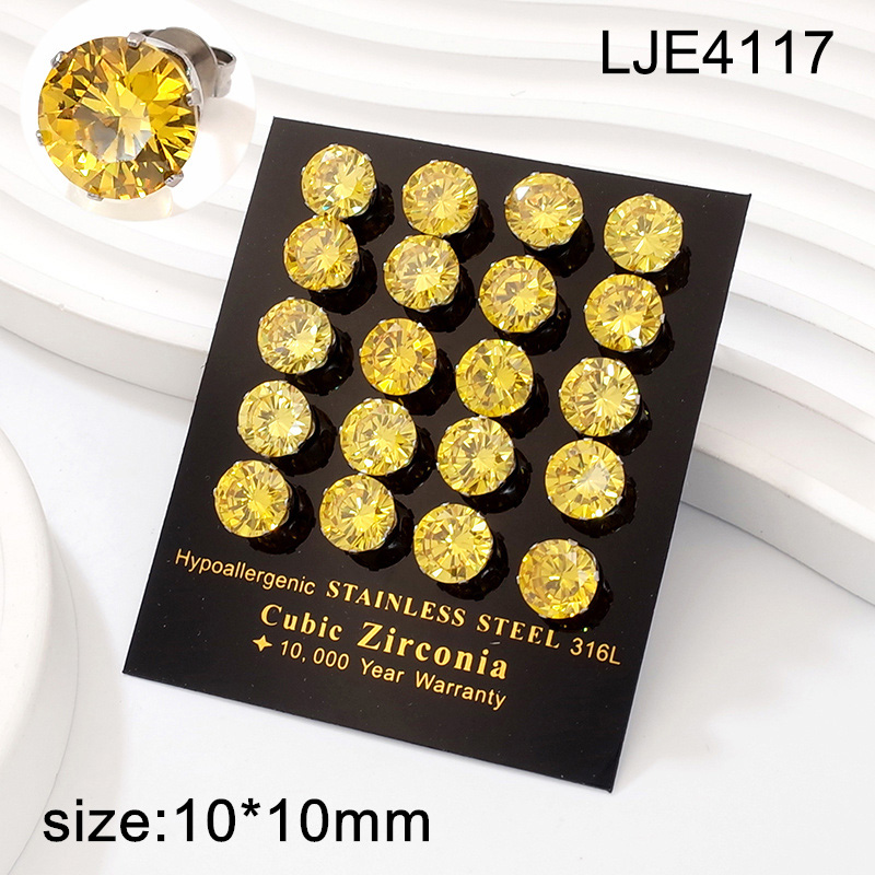 Home > Level A Stainless Steel Jewelry Steel color Golden yellow Round Zircon Earrings