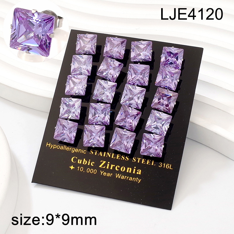 Home > Level A Stainless Steel Jewelry Steel color Turn blue Square Zircon Earrings