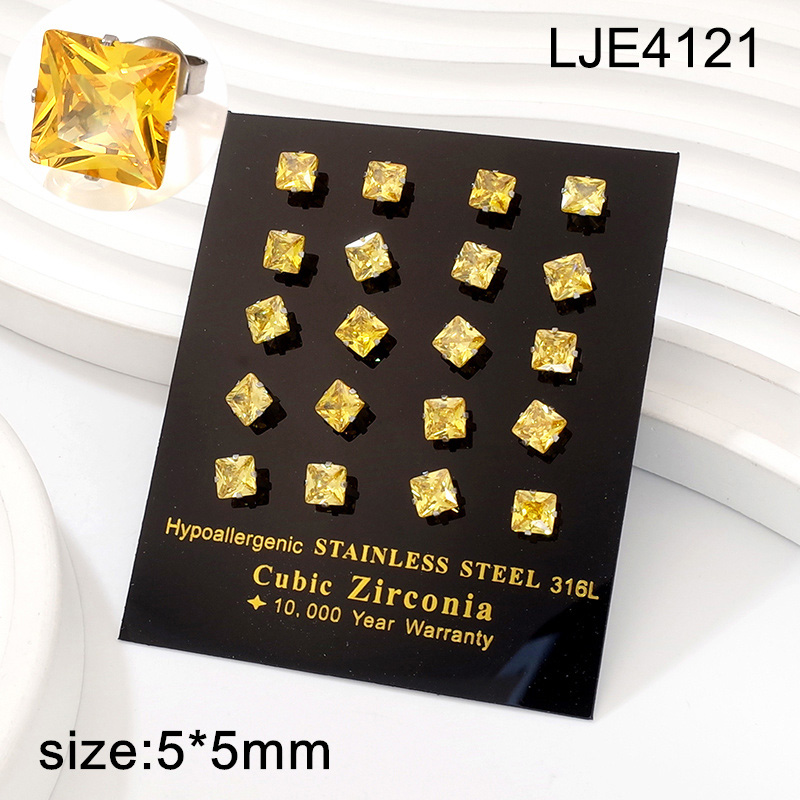 Home > Level A Stainless Steel Jewelry Steel color Golden yellow Square Zircon Earrings