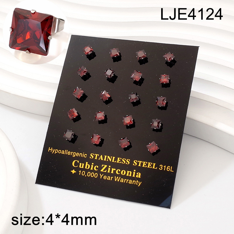 Level A Stainless Steel Jewelry Steel color Red Square Zircon Earrings