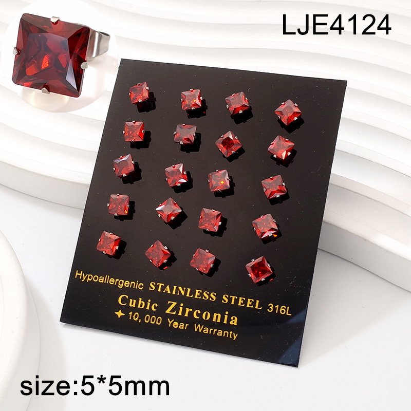 Level A Stainless Steel Jewelry Steel color Red Square Zircon Earrings