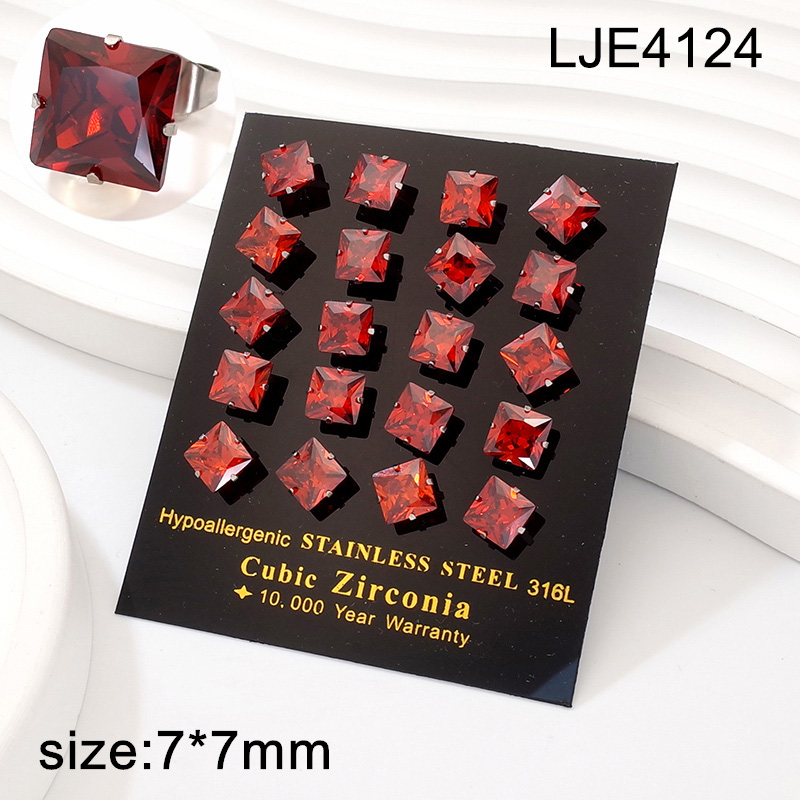 Level A Stainless Steel Jewelry Steel color Red Square Zircon Earrings