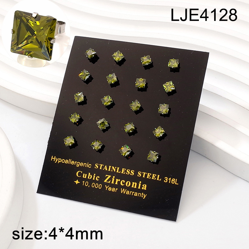 Home > Level A Stainless Steel Jewelry Steel color Olive green Square Zircon Earrings