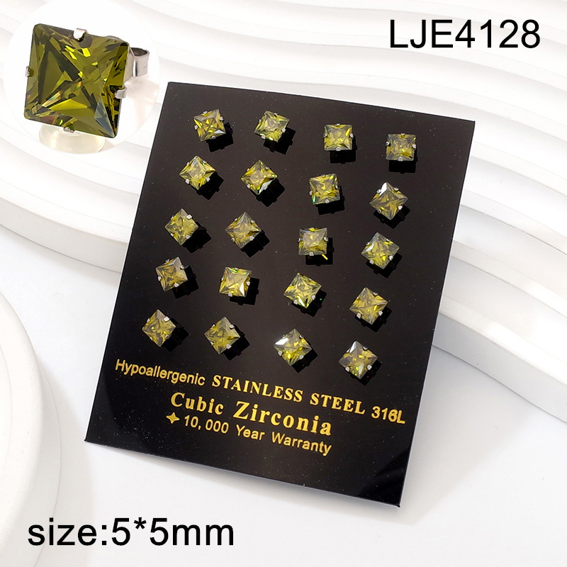 Home > Level A Stainless Steel Jewelry Steel color Olive green Square Zircon Earrings