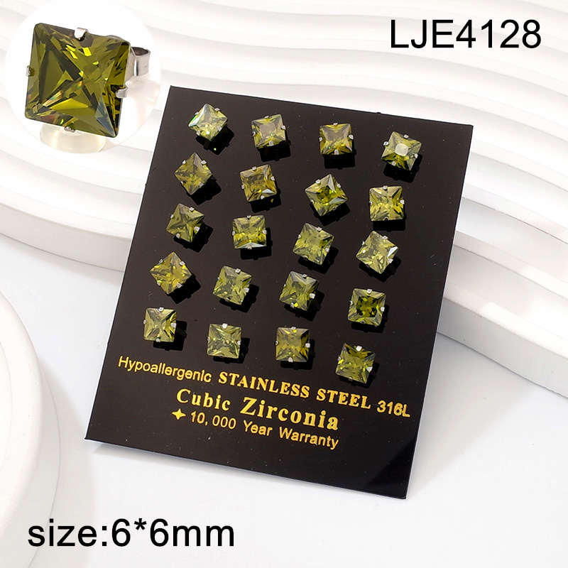 Home > Level A Stainless Steel Jewelry Steel color Olive green Square Zircon Earrings