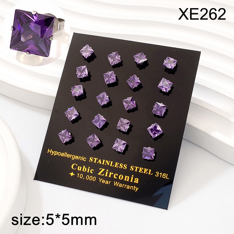 Home > Level A Stainless Steel Jewelry Steel color Purple Square Zircon Earrings