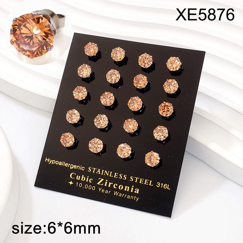 Home > Level A Stainless Steel Jewelry Steel color Champagne Round Zircon Earrings