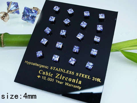 Home > Stainless Steel Jewelry Rose gold Turn blue Square Zircon Earrings
