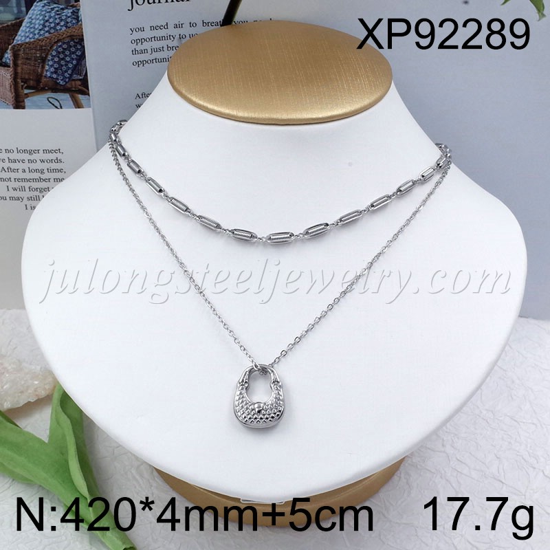 Stainless Steel Jewelry New Trendy Two Layers Chain Lock Pendant