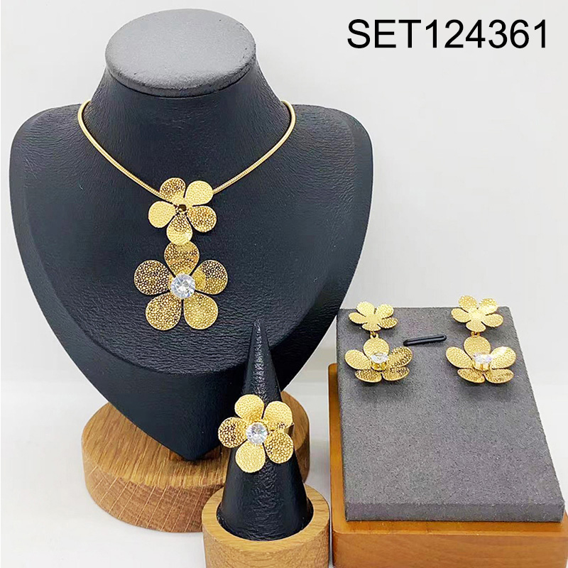 Level B Stainless Steel New Trendy Women Jewelry Flower Golden 3pcs SET