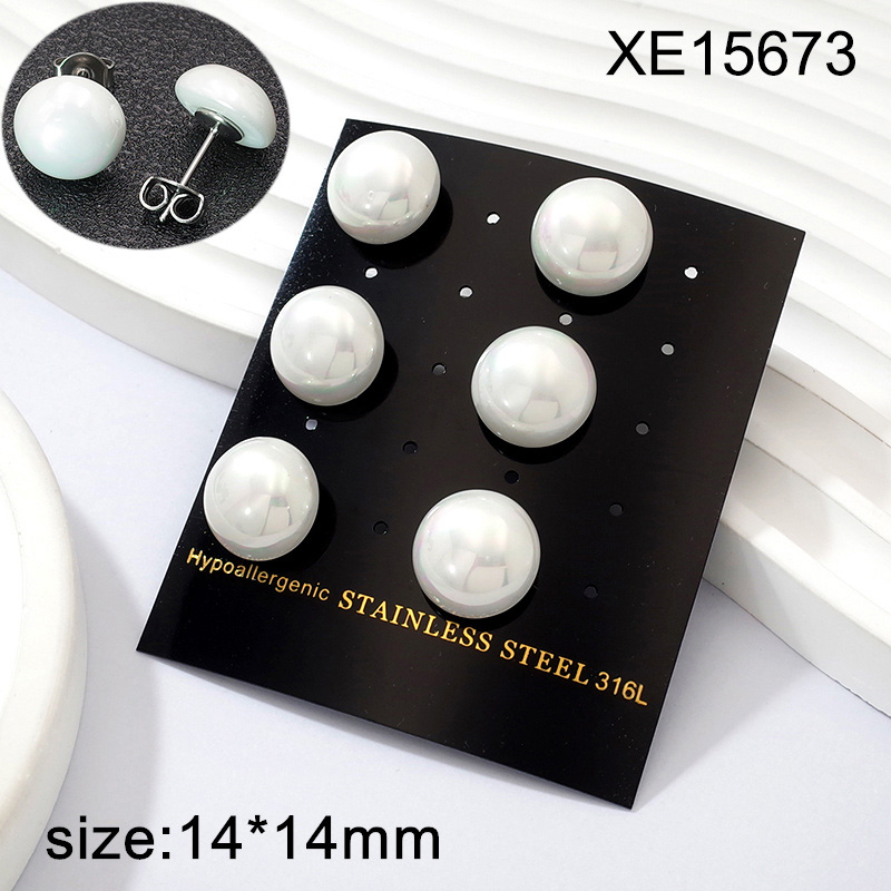Home > Level A Stainless Steel Jewelry White Half Round Shell Bead Imitation Pearl Earrings