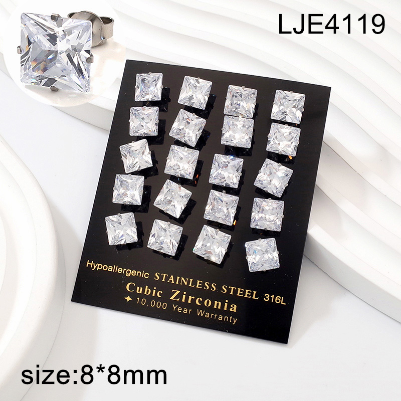 Level A Stainless Steel Jewelry Steel color White Square Zircon Earrings
